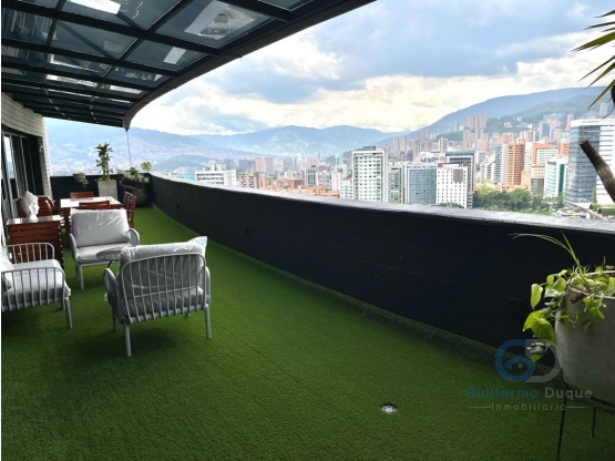 Penthouse, con gran vista a la ciudad, a unos pasos del centro comercial, Oviedo y del centro comercial, Santa Fe. En el poblado Medellín. Posee sus dos habitaciones principales con cama King cada una con Baño completo. Aire acondicionado y salida a un gran balcón. La terraza posee gran espacio como se ven las fotos. El edificio cuenta con Recepcion 24 horas, servicio de restaurante, gimnasio, Jacuzzi. Renta de 6 meses en adelante.